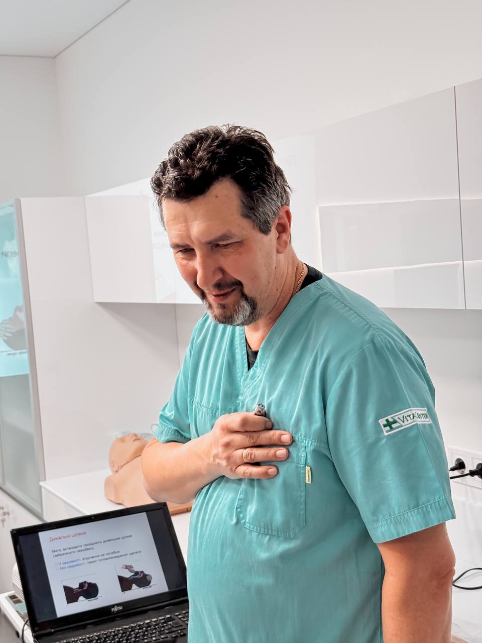 Кожен лікар-стоматолог має бути готовим не лише до щоденних клінічних завдань, а й до ситуацій, де від його рішень залежать життя та безпека пацієнта. Саме тому ми регулярно проводимо внутрішні навчання та практичні курси, зокрема – по невідкладних станах щороку.